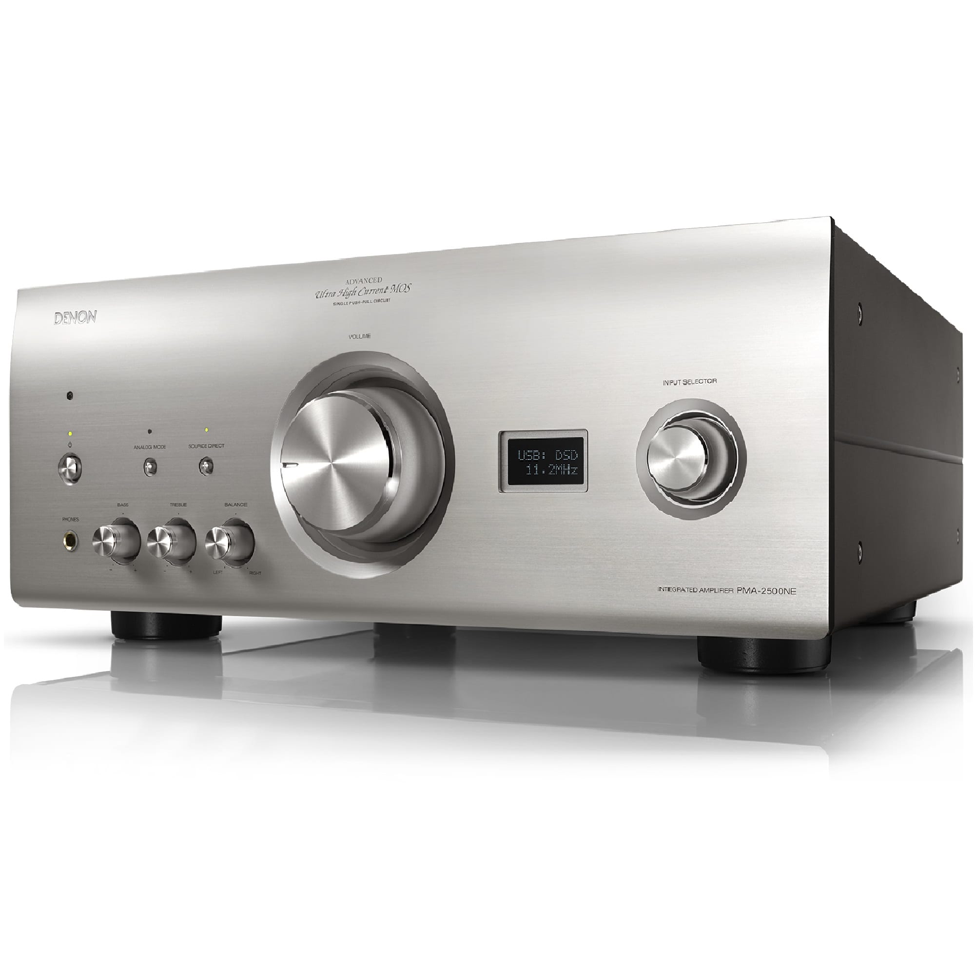 Kỹ thuật kết nối nhiều linh kiện khuếch đại song song, để đảm bảo dòng điện mạnh mẽ đã giải quyết được vấn đề đục tiếng trong âm thanh gây ra bởi hiệu suất không đồng đều giữa các linh kiện. Và để đạt được sự trình diễn âm nhạc nhiều sắc thái và tinh tế của âm thanh, Denon đã tiếp tục tập trung vào mạch khuếch đại thực hiện bởi bộ đôi MOSFET. PMA-2500NE sử dụng loại UHC-MOS FET điện áp cao, công suất lớn ( đỉnh là 210A).