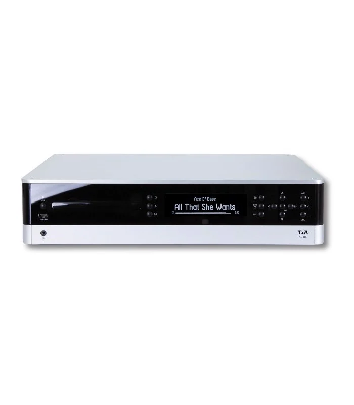 T+A K 2 blu được thiết kế khá đơn giản với cấu trúc dạng hình hộp chữ nhật có kích thước 3 chiều cao, rộng, sâu lần lượt là 107 x 440 x 355mm và có trọng lượng là 12kg. Nhà sản xuất sử dụng các cạnh được vuốt cong để mang đến vẻ ngoài tinh tế, đẹp mắt cho sản phẩm. Mặt trước của T+A K 2 blu được trang bị 1 tấm màn bóng bảy là vị trí của khay đọc đĩa, các phím chức năng và màn hình hiển thị. Màn hình hiển thị VFD màu đen với chữ màu trắng giúp người dùng dễ dàng theo dõi được trạng thái hoạt động của sản phẩm nhờ kích cỡ, phông chữ khác nhau cùng nhiều tầng độ sáng của chữ để có những tùy chỉnh chính xác hơn. Các phím chức năng cơ bản được dùng để mở khay đĩa, tăng âm lượng, … đều có các chú thích bên cạnh.