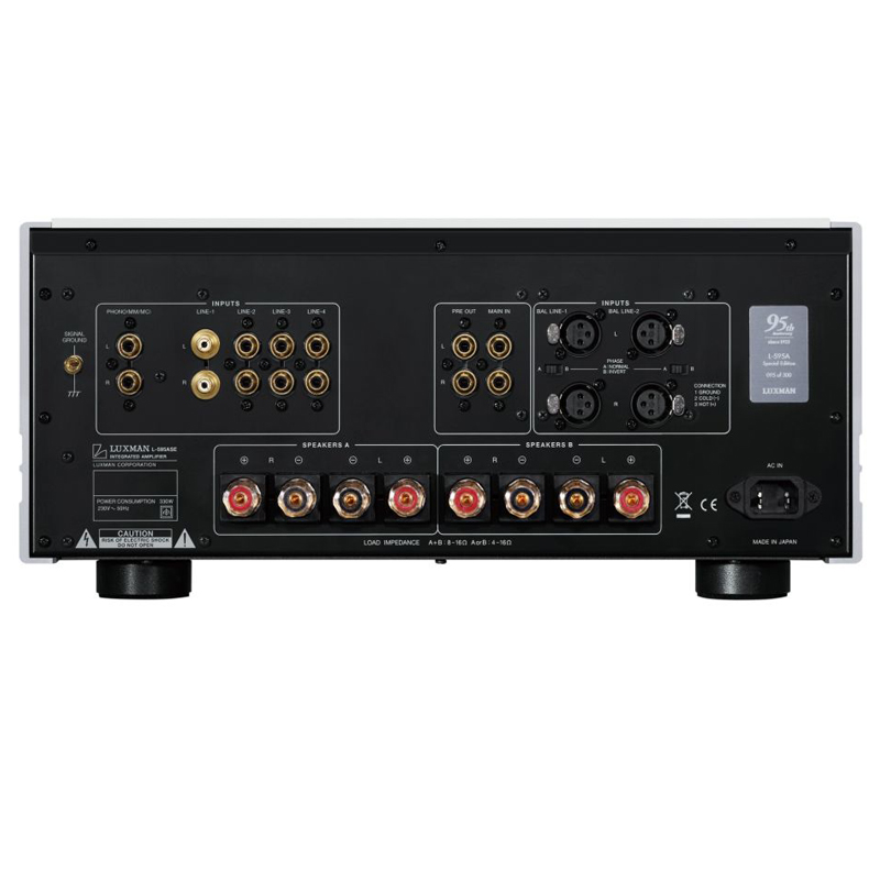 Luxman L-595A SE hay Luxman L-595A Limited Edition là chiếc ampli tích hợp đầu bảng, phiên bản đặc biệt kỷ niệm 95 năm của hãng âm thanh hi-end lừng danh đến từ Nhật Bản Luxman, được sản xuất và bán ra với số lượng cực kỳ giới hạn, khi chỉ có đúng 300 chiếc được tung ra thị trường trên khắp thế giới. Toàn bộ quy trình thiết kế, chế tác và hoàn thiện sản phẩm này đều được thực hiện ngay tại công xưởng của Luxman, với những tiêu chuẩn kỹ thuật khắt khe nhất của hãng, đảm bảo cho ra đời những chiếc ampli hi-end có chất lượng hoàn hảo. Luxman L-595A SE được trang bị nền tảng linh kiện thượng hạng, cùng những công nghệ tiên tiến nhất hiện có của Luxman, biến nó trở thành một trong những bộ khuếch đại tốt nhất mà hãng từng tạo ra suốt lịch sử gần 1 thế kỷ của họ.