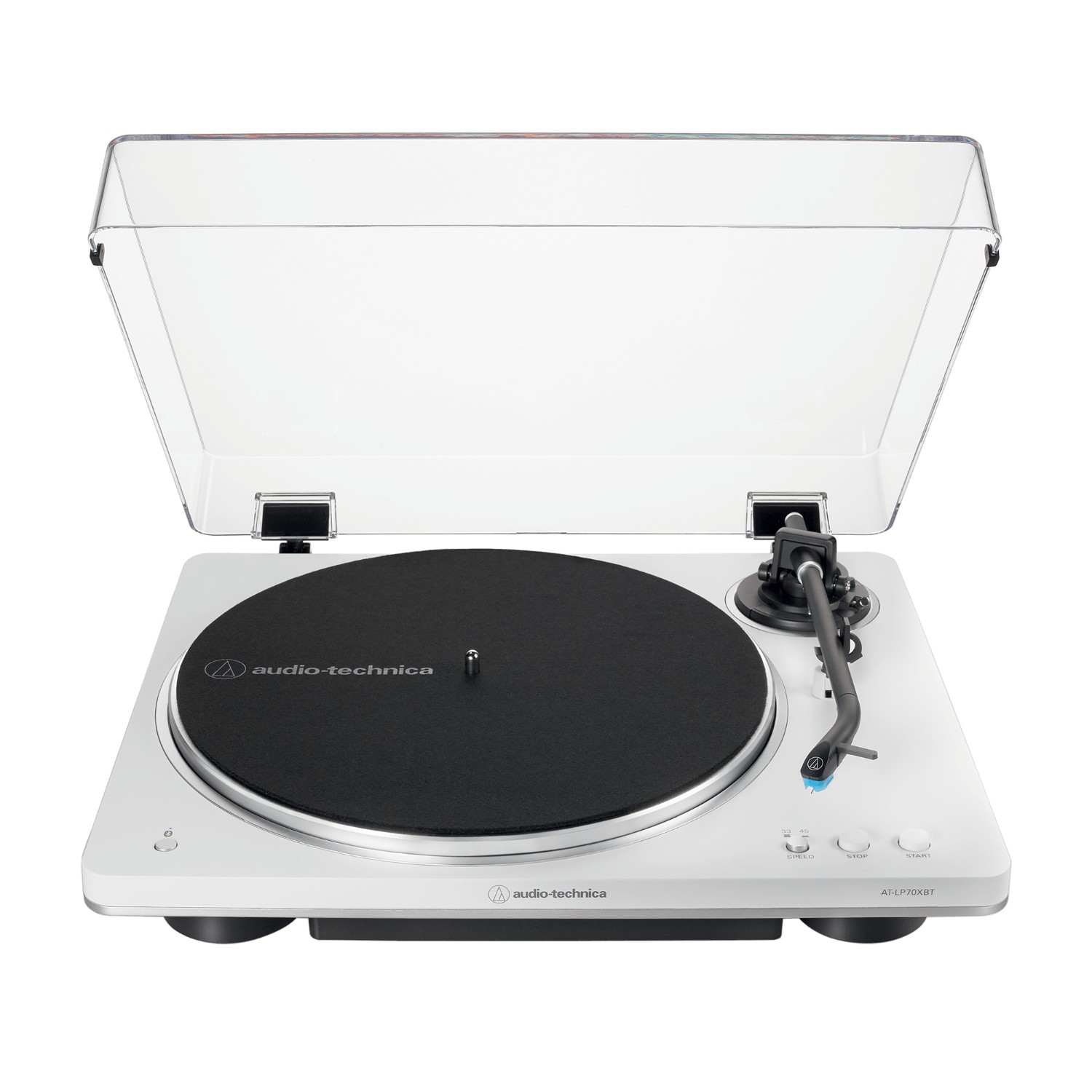 AT-LP70xBT phát đĩa 33 1/3 và 45 vòng/phút chỉ bằng một nút bấm và có bộ tiền khuếch đại phono có thể chuyển đổi. Điều này có nghĩa là nó có thể kết nối trực tiếp với loa có nguồn, chẳng hạn như AT-SP3X của hãng hoặc thông qua bộ khuếch đại không có tầng phono.