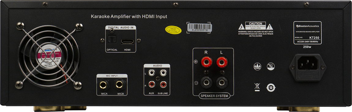 Bên cạnh Kết nối Bluetooth thời thượng, Boston Acoustics KT250 còn có cổng USB, SD Card mà đặc biệt là Optical và HDMI (ARC) giúp người dùng tận hưởng thú vui ca hát, nghe nhạc thuận tiện hơn từ điện thoại, thẻ nhớ, USB, Smart Tivi mà không cần phải mua thêm đầu phát Karaoke và CD.