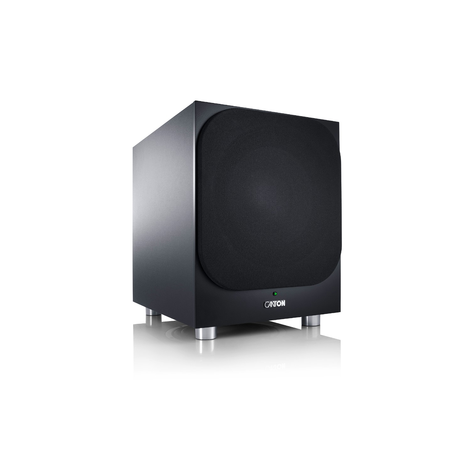 The Power Sub 12 active subwoofer from Canton operates according to the bass reflex principle with a downfire passive cone. To guarantee precise mechanical performance, it is equipped with a lavishly dimensioned drive including the latest generation of wave surround technology. Compared to conventional surrounds, the multi-folded wave surround allows for a much longer excursion and reduces sound distortion. For maximum precision and correct impulse processing of the low-frequency signals, the Power Sub 12 uses a high-performance woofer chassis made of titanium and a rigid passive cone made of MDF. The 24-kilogram Power Sub 12 in classic cube design has a powerful 380-watt power amplifier with high- and low-level inputs and, despite its living-room-friendly dimensions (36 x 47.5 x 50 cm), provides an enormous low-frequency foundation. Its automatic on/off function makes it easy to use in everyday life, and thanks to the controllability of volume, phase and crossover frequency, the Power Sub 12 harmonises with all stereo and home cinema speakers. The sound-transparent fabric front covers adhere magnetically to the baffle, and their generously rounded "corners" give our Power Sub 12 an attractive face of its own.