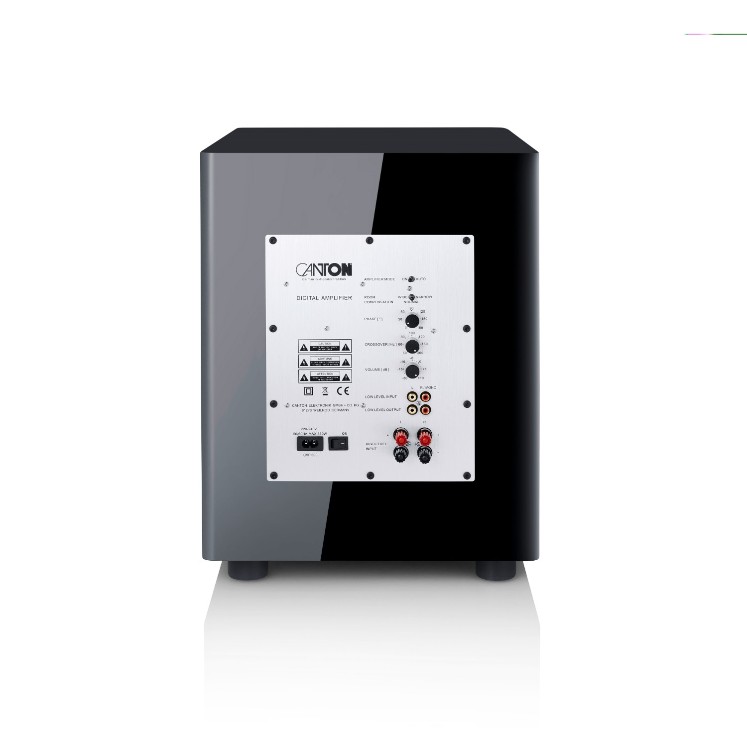 Features | Automatic on/off switch adjustable volume Adjustable phase limiter Adjustable crossover frequency |