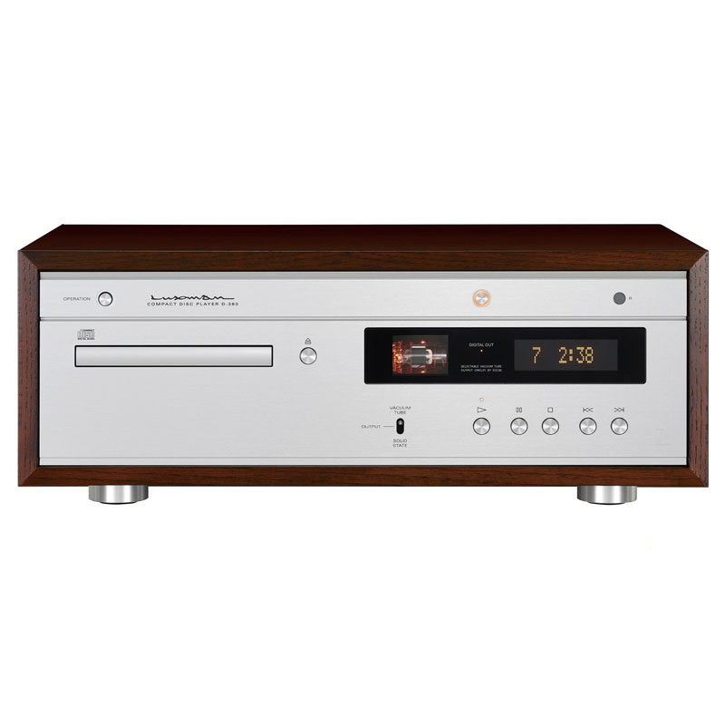 The D-380 is a digital CD player that can also play music through the vacuum tube output and which bears the number ‘38’ – a number synonymous with the golden era of LUXMAN vacuum tube amplifiers. This player features a vacuum tube output consisting of a buffer circuit using ECC82 vacuum tube and a dedicated transformer as well as an advanced digital circuit with a 32-bit compatible DAC and a jitter reduction IC. The D-380 is housed in a classical wooden box and enhances the enjoyment of listening to CD’s for the many fans of music played through this mature music medium.