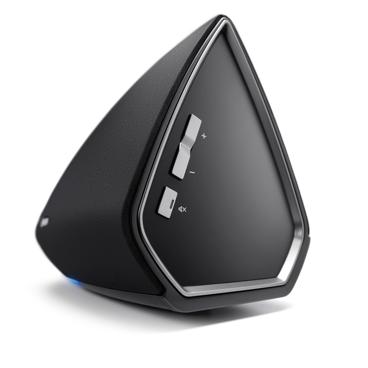 Loa DENON HEOS 5 HS2 có trọng lượng 3,2kg cùng kích thước 209 x 294 x 166 mm. Với thiết kế này, để bạn có thể đặt loa ở vị trí nào trong nhà cũng được. Sườn phải loa có các phím chỉnh volume lớn nhỏ và nút mute ( nhấn giữ nút này 5 giây để tắt/mở nguồn điện ) , đèn báo trạng thái câm tiếng, đèn báo trạng thái nhiều màu.