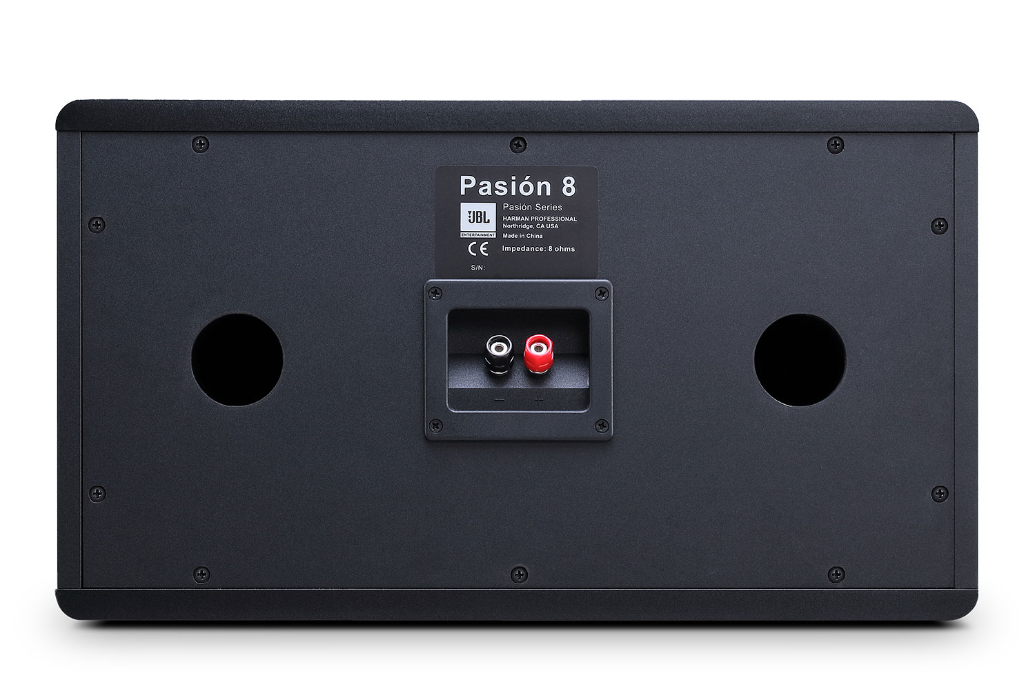 JBL Pasion 8 được thiết kế kiểu thùng loa bass-reflex với 2 lỗ thoát hơi bass ở mặt sau, nhờ cộng hưởng thêm không gian phía sau loa, âm bass thêm sức mạnh và có độ phủ hơn. Trạm loa được thiết kế để có thể sử dụng Jack cắm bắp chuối dễ dàng kết nối.