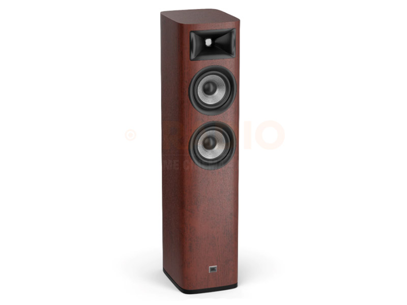 - Thiết kế JBL STUDIO kiểu mới đẹp mắt và sang trọng với thùng loa màu nâu gỗ với những đường cong mềm mại và sang trọng