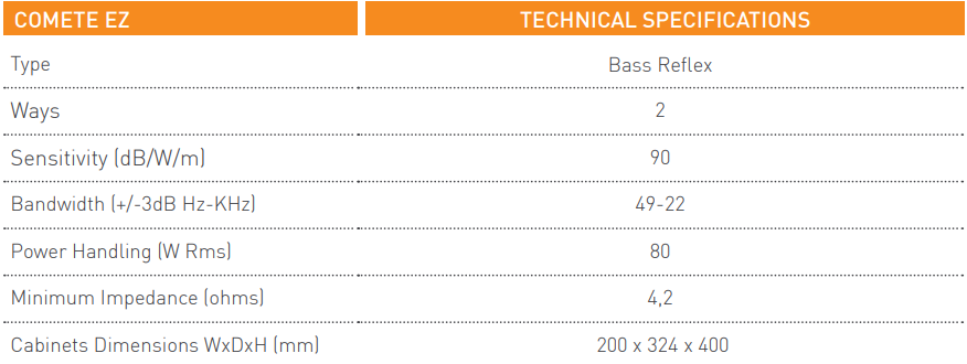 Loa này mang lại trải nghiệm nghe tương tự như loa đứng trên sàn mà không chiếm không gian. Bạn nên sử dụng giá đỡ loa chuyên dụng (ví dụ: S02) để có chất lượng âm thanh tối ưu. Comète Ez là chiếc loa hoàn hảo dành cho những ai đang tìm kiếm một chiếc loa hiệu suất cao với kích thước mạnh mẽ và kích thước hợp lý. Nó lý tưởng cho các phòng có diện tích từ 15 đến 30m2.