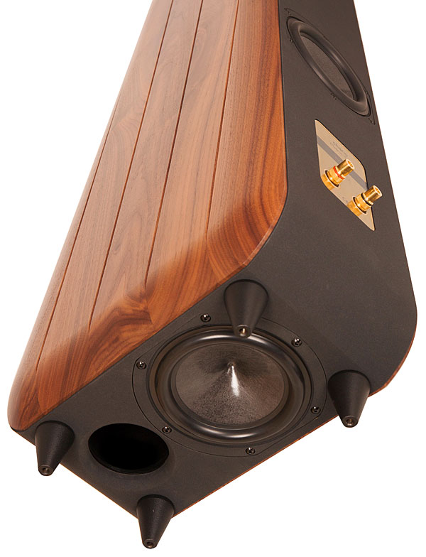 Ở mặt trước là một mid woofer và dải tweeter mềm tinh tế, được thiết kế tương tự như một chiếc loa bookshelf Aviator Ghibli mang đến sự tinh tế mềm mại nhưng giảm được sự méo tiếng do màng loa mid-woofer chỉ cần tái tạo trung âm.