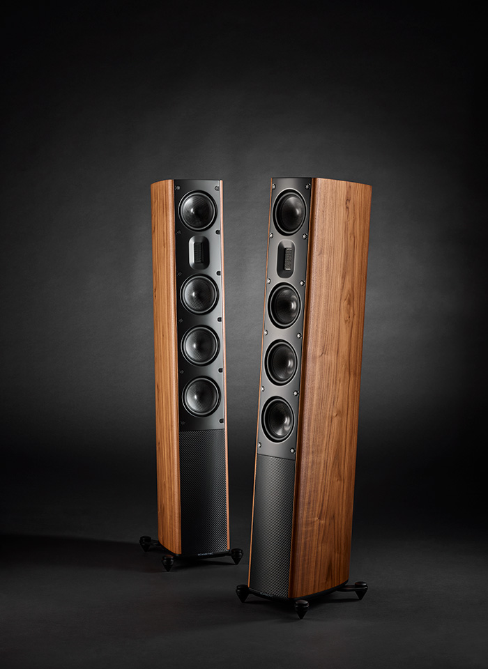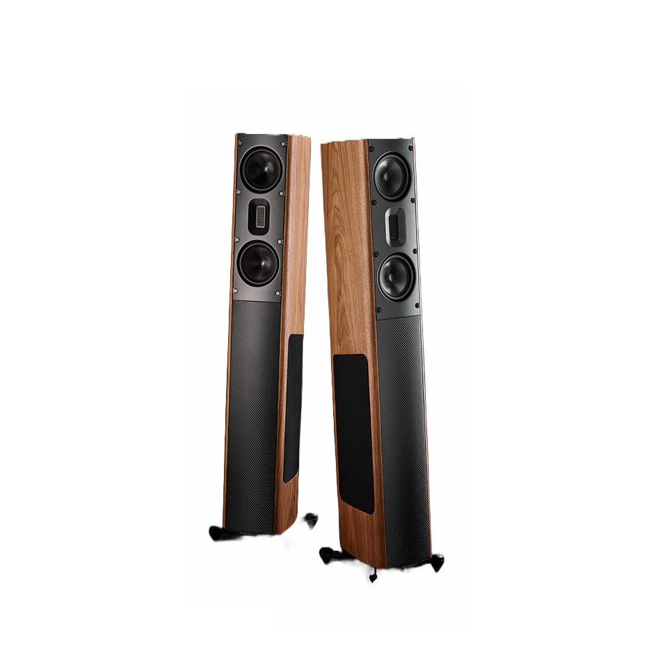 - 2 trình điều khiển âm trầm/trung 4,5” hình nón carbon với hệ thống nam châm treo