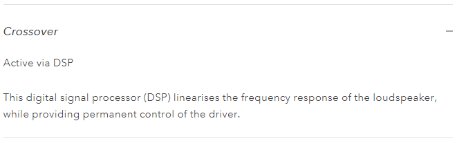 Loa chủ động CAPELLA được hưởng lợi từ tổng công suất đầu ra là 2x100W. Mỗi củ loa có bộ chuyển đổi riêng và mạch khuếch đại 50W chuyên dụng. Bộ xử lý tín hiệu số (DSP) thế hệ tiếp theo liên tục giám sát hành vi của củ loa để phát huy hết tiềm năng của hệ thống, đặc biệt là ở tần số thấp. Sự giao nhau được điều khiển kỹ thuật số, đảm bảo đáp ứng tần số tuyến tính hoàn hảo. Các nốt trầm sâu hơn và được kiểm soát tốt hơn, âm trường rõ ràng và cân bằng hơn, giọng hát trong trẻo và chi tiết hơn.
