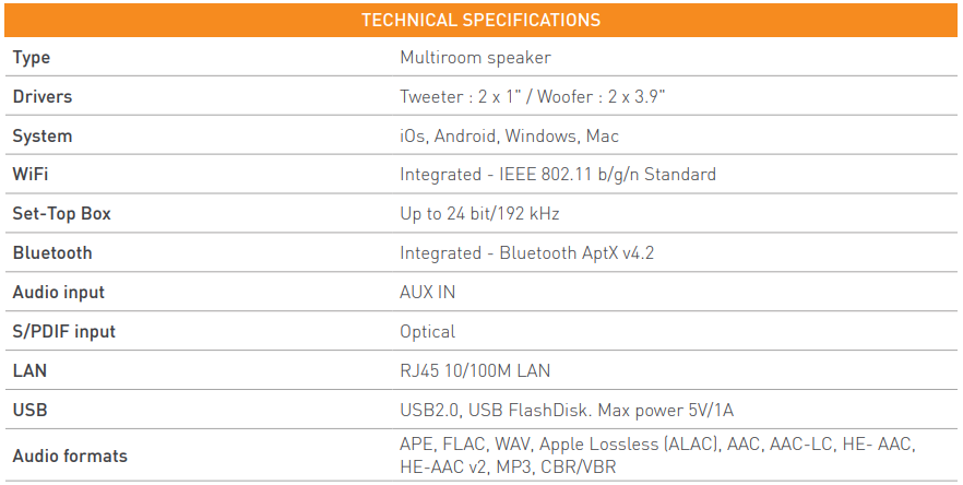 Là sự kết hợp hoàn hảo giữa hiệu suất và kích thước, AIO 3 là loa không dây được thiết kế để mang âm nhạc đến một căn phòng có diện tích trung bình từ 15m2 trở lên. Truyền phát tất cả âm nhạc của bạn từ điện thoại, máy tính bảng hoặc máy tính nhờ kết nối Bluetooth và Wifi. Với ứng dụng "Tam giác AIO", hãy tạo một mạng lưới nhiều phòng lên tới 12 thiết bị để phát nhạc khắp nhà. Ở mặt sau của AIO 3, bạn sẽ tìm thấy nhiều lựa chọn đầu vào như optical, RCA 3,5 mm và USB A cho phép kết nối với nhiều loại thiết bị âm thanh-video.