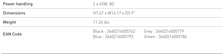 Được chia thành hai phần để tái tạo chính xác các kênh trái và phải, loa được trang bị loa tweeter vòm vải 2 x 25 mm và trình điều khiển âm trầm trung 2 x 10 cm sẽ cho âm thanh tuyệt vời trong các phòng có diện tích vừa và nhỏ, lên đến 25m2.