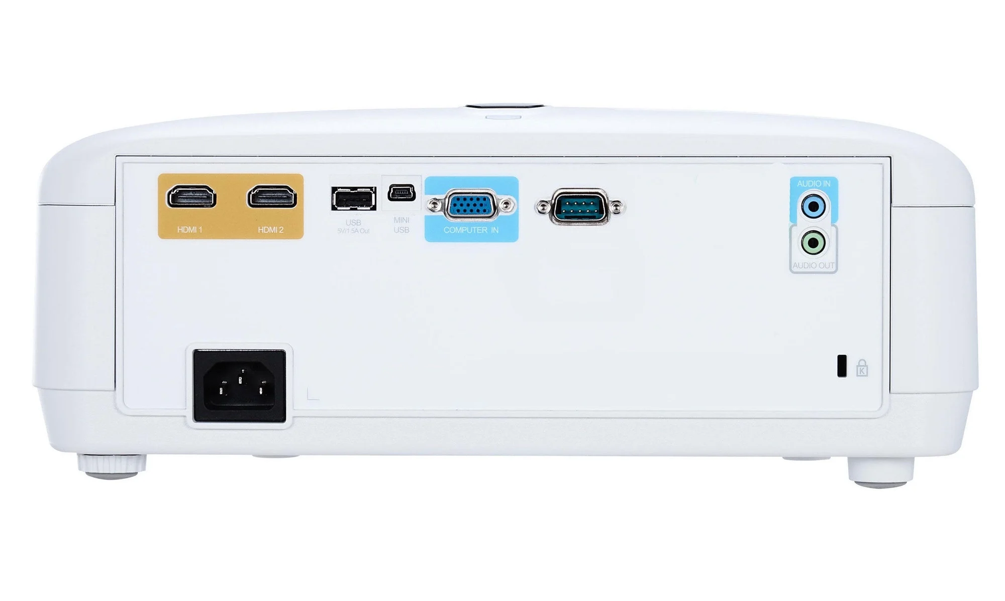 Kiểm soát tập trung: Nút nguồn nằm ở vị trí trung tâm giúp dễ dàng kiểm soát trạng thái của máy chiếu và cũng tăng gấp đôi bộ thu IR để quản lý máy chiếu thuận tiện.