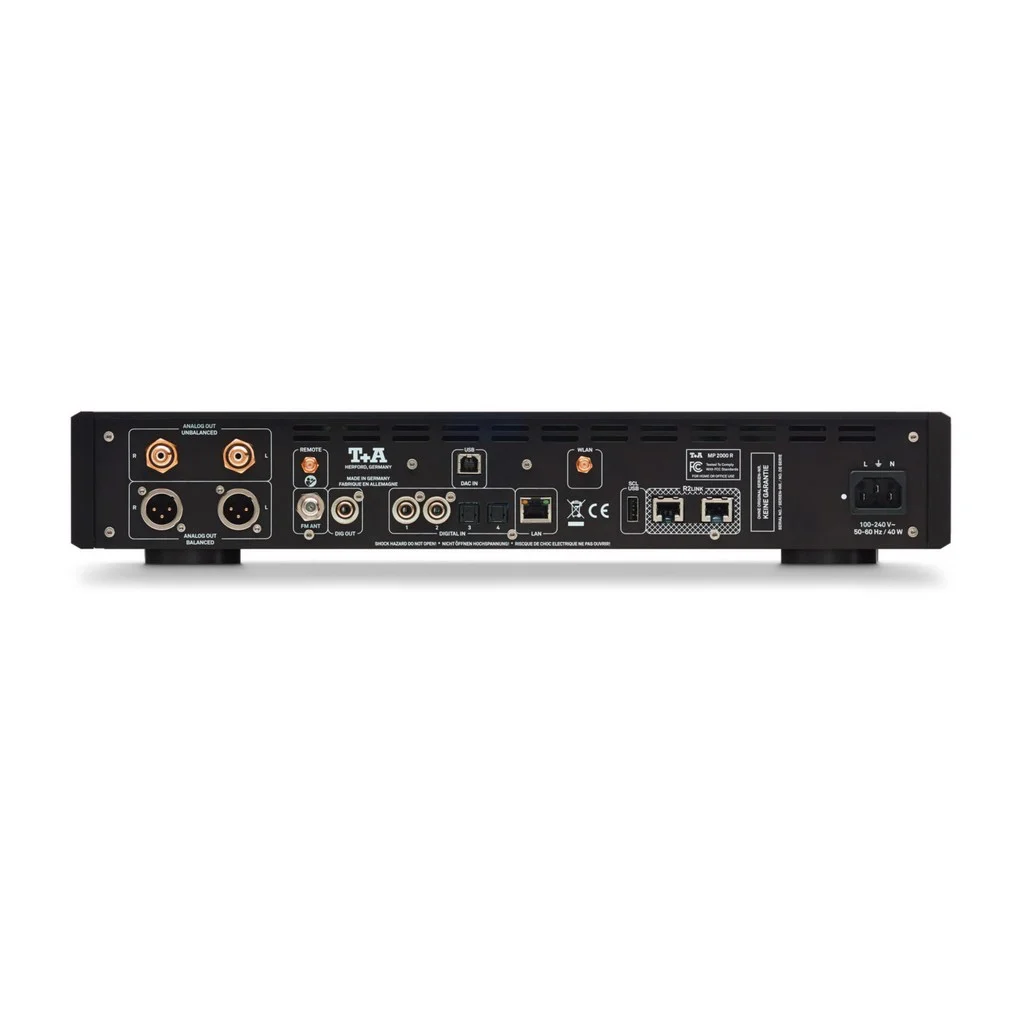 Trong MP 2000 R, dữ liệu từ năm nguồn kỹ thuật số đi qua cùng một tuyến xử lý tín hiệu kỹ thuật số, cung cấp tất cả các tính năng T + A đột phá thông thường: T + A DSP oversampling với các thuật toán được tối ưu hóa và tạo xung nhịp với loại bỏ jitter và đồng bộ hóa lại.