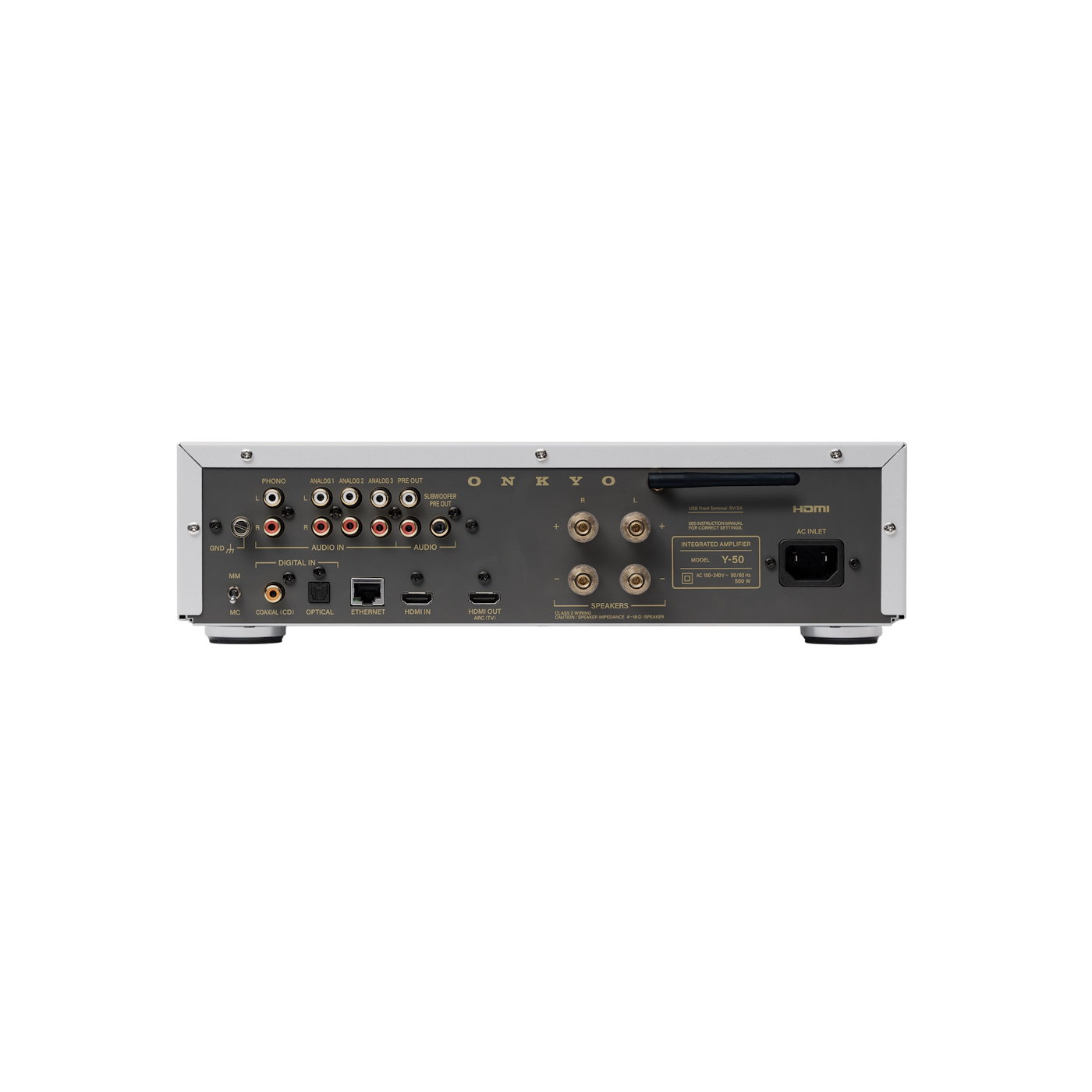 Với nhiều cổng kết nối âm thanh, Onkyo Muse Y-50 sở hữu ba cặp đầu vào RCA analog, một đầu vào COAX, một đầu vào phono (tương thích MM/MC), và một đầu vào/đầu ra HDMI/HDMI ARC cùng đầu ra HDMI cho âm thanh video và chơi game. Thiết bị hỗ trợ Ethernet và WiFi, cho phép phát lại trực tuyến chất lượng cao. Y-50 cũng tích hợp công nghệ hiệu chỉnh âm thanh phòng Onkyo Room EQ độc quyền được thiết kế riêng cho dòng Muse Series - đo lường môi trường nghe của bạn và tối ưu hóa trường âm thanh để mang lại trải nghiệm tốt nhất.