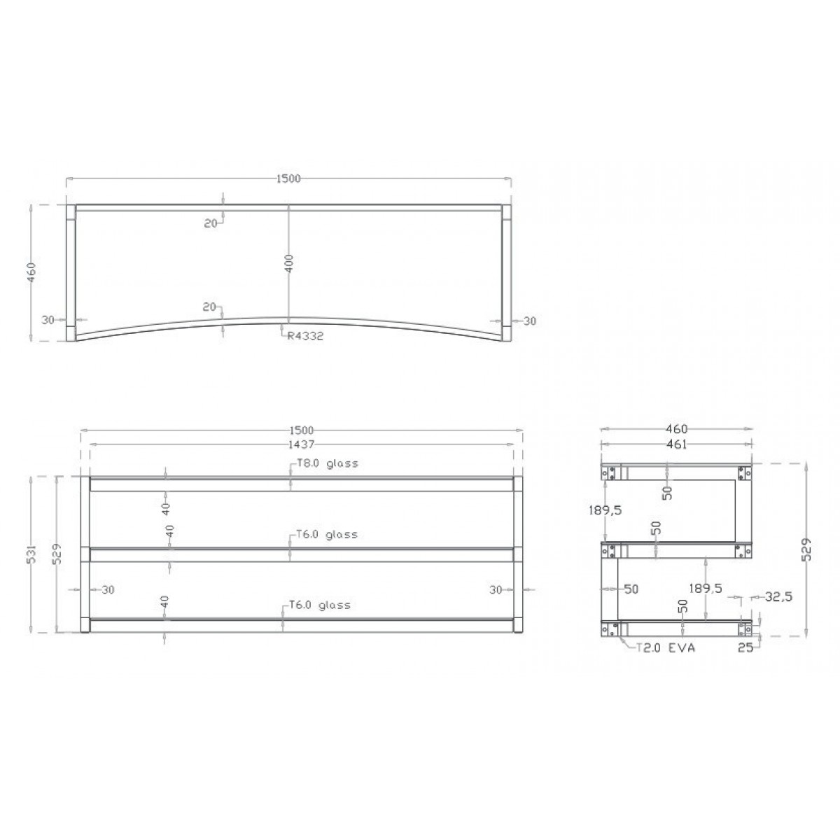 - Dimensions (W x H x D): 1530 x 155 x 550 mm
