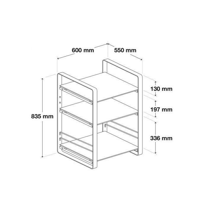 - External dimensions (W x H x D): 600 x 835 x 550 mm