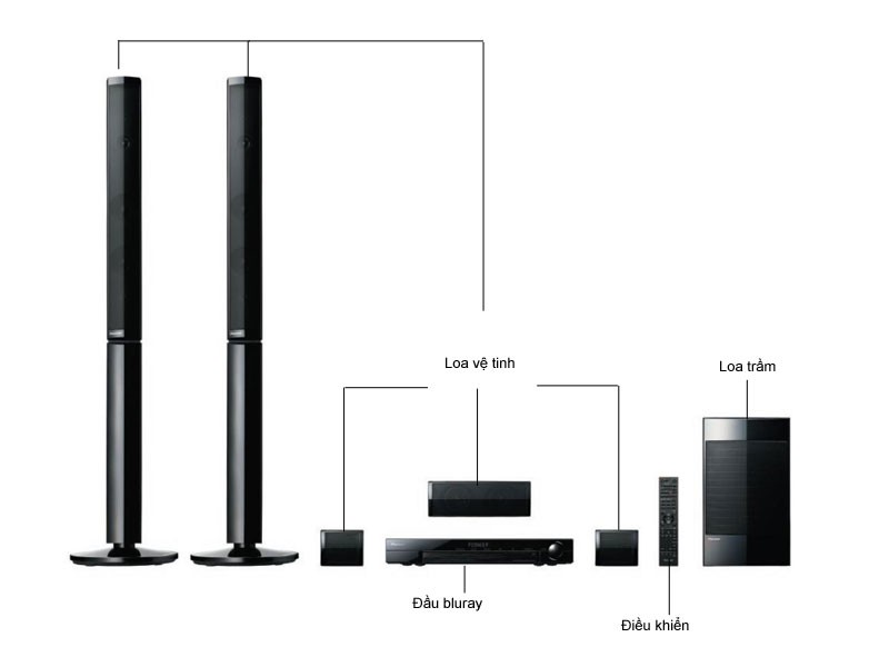 Hệ thống dàn âm thanh vòm Blu-ray với 2 loa cột, 2 loa Satellite, hỗ trợ kết nối Wi-Fi