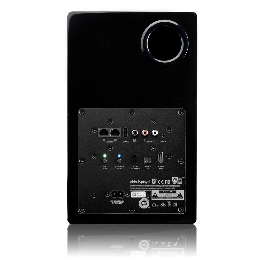 - Line Level, Optical, 3,5 mm Aux và Ethernet để kết nối với nhiều loại thiết bị