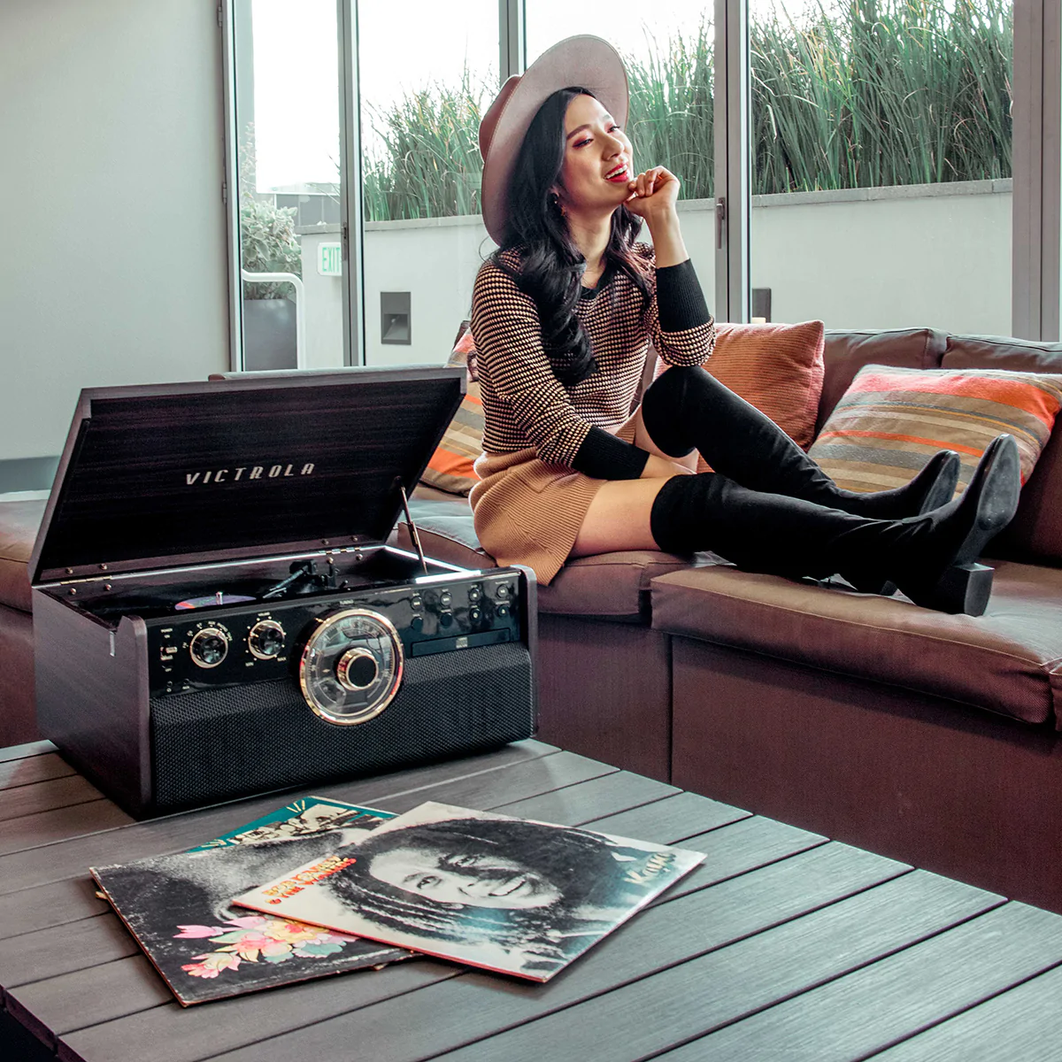 - Bản ghi vinyl, đài FM, CD, băng cassette hoặc phát trực tuyến qua Bluetooth hoặc Giắc cắm tai nghe/phụ trợ 3,5 mm